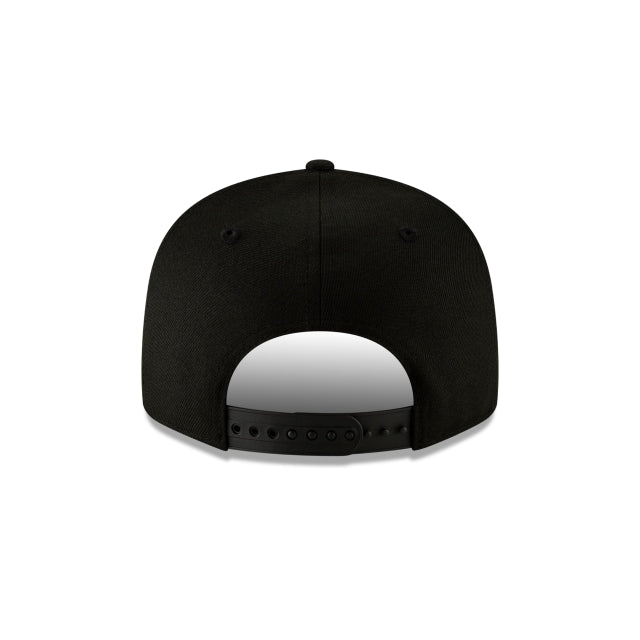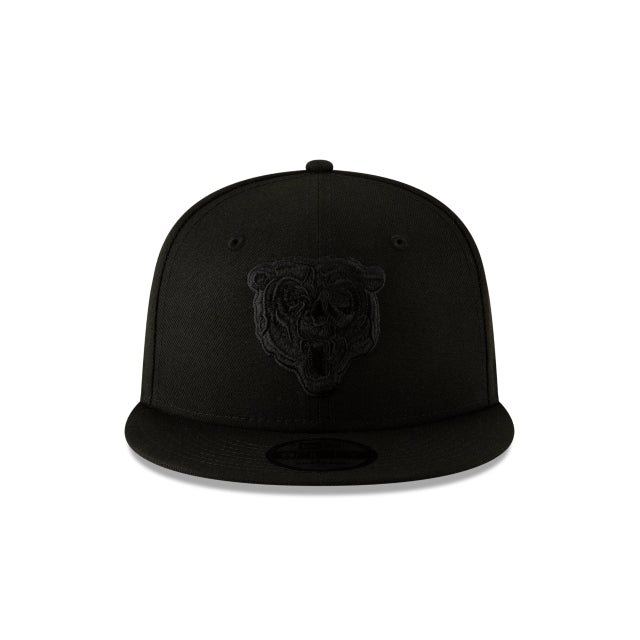 The Chicago Bears Black on Black 9FIFTY Snapback features an allover black fabrication with an embroidered Bears logo at the front panels and an adjustable snapback closure at the rear.