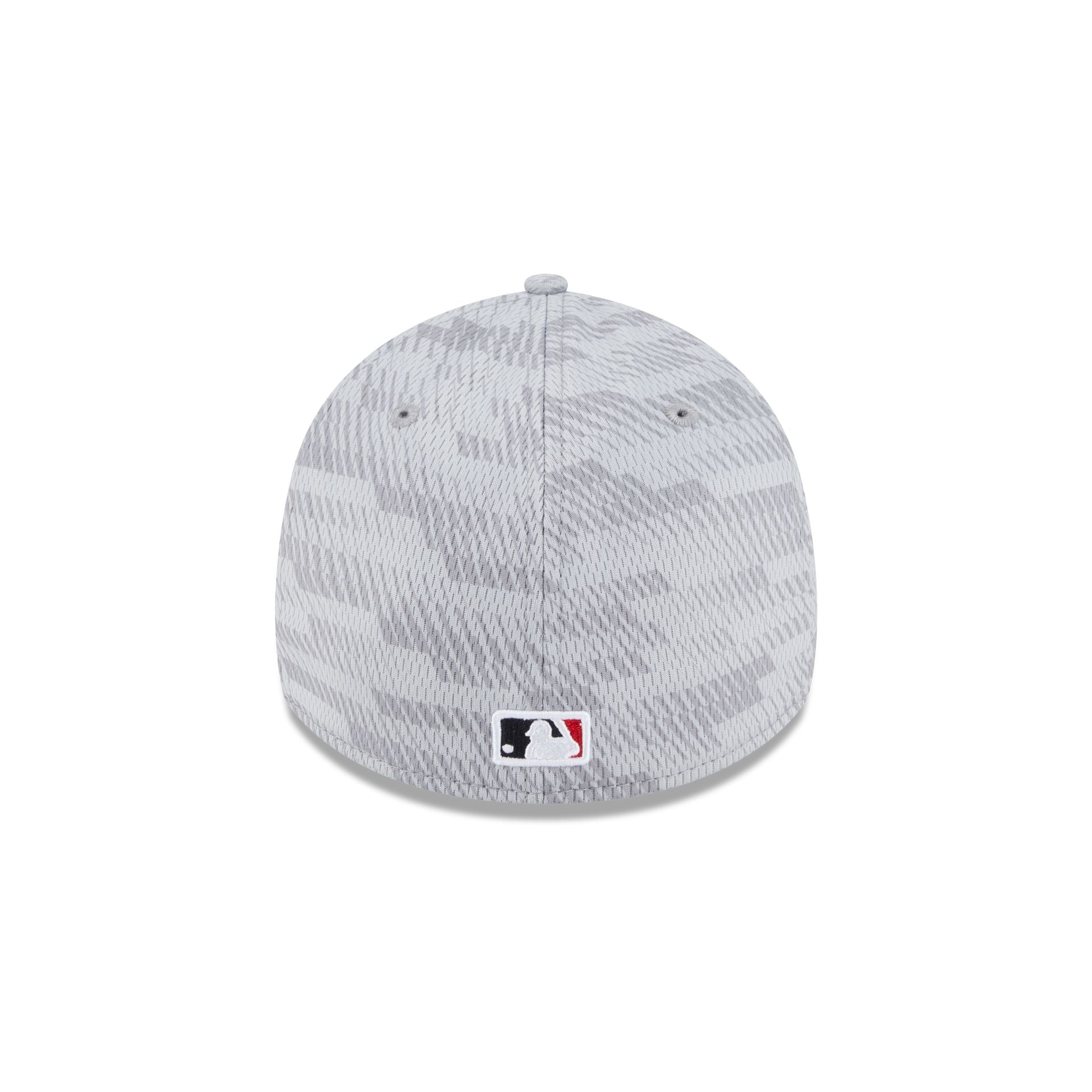 The Cincinnati Reds 2025 Clubhouse Gray 39THIRTY Stretch Fit Cap features an embroidered Reds logo at the front panels with a matching MLB Batterman logo at the rear and a dashmark mesh fabrication throughout. Additional details include a silicone team tag on the right-wear side and team logo on the undervisor.