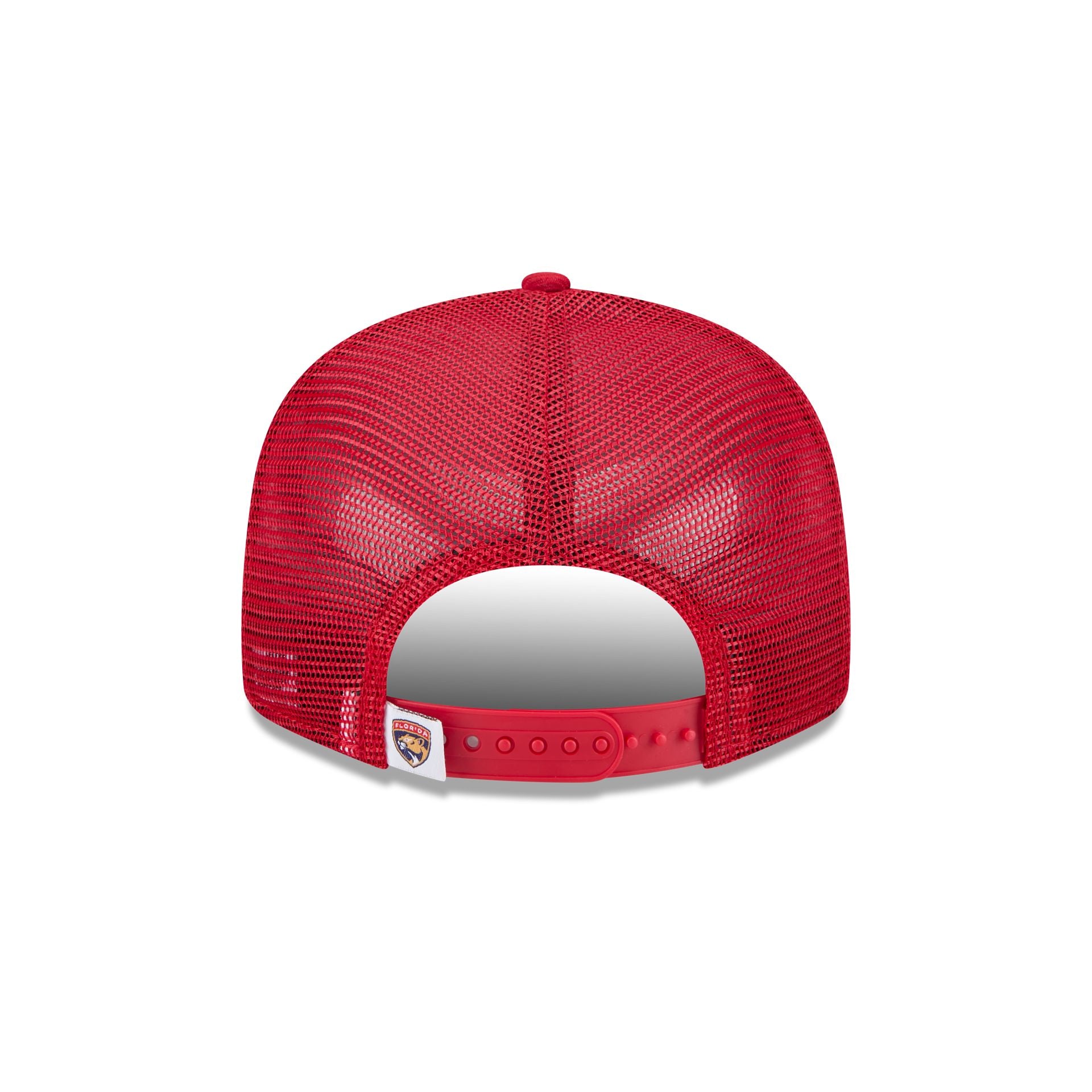 The Florida Panthers Team Tag 9FIFTY Trucker features an embroidered Panthers logo at the front panels with a team tag on an snapback closure at a mesh rear and a gray undervisor.