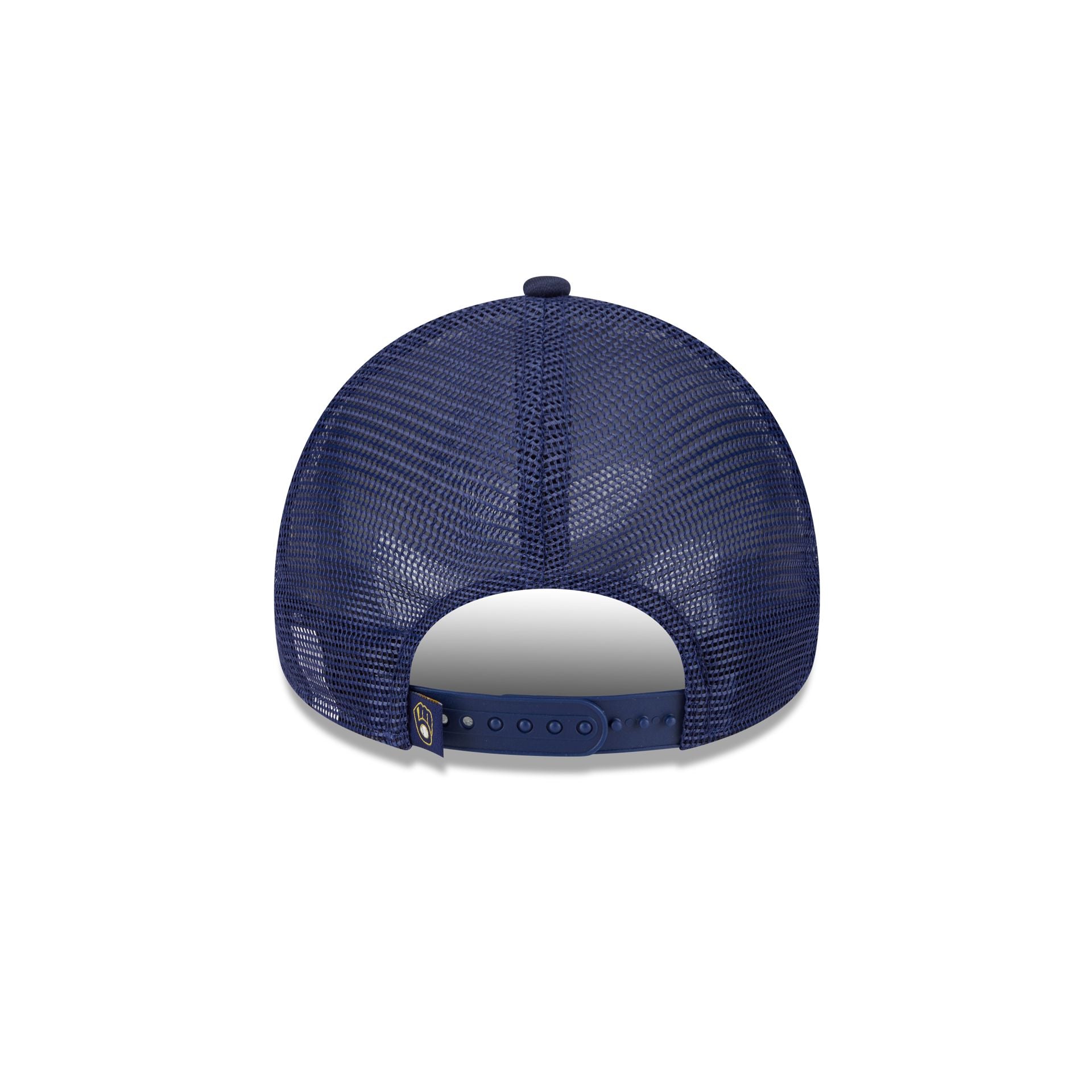 The Milwaukee Brewers Distressed 9FORTY A-Frame Trucker features a distressed screen-printed Brewers wordmark and logo at the front panels with a team tag at a snapback closure at the rear and a green undervisor.