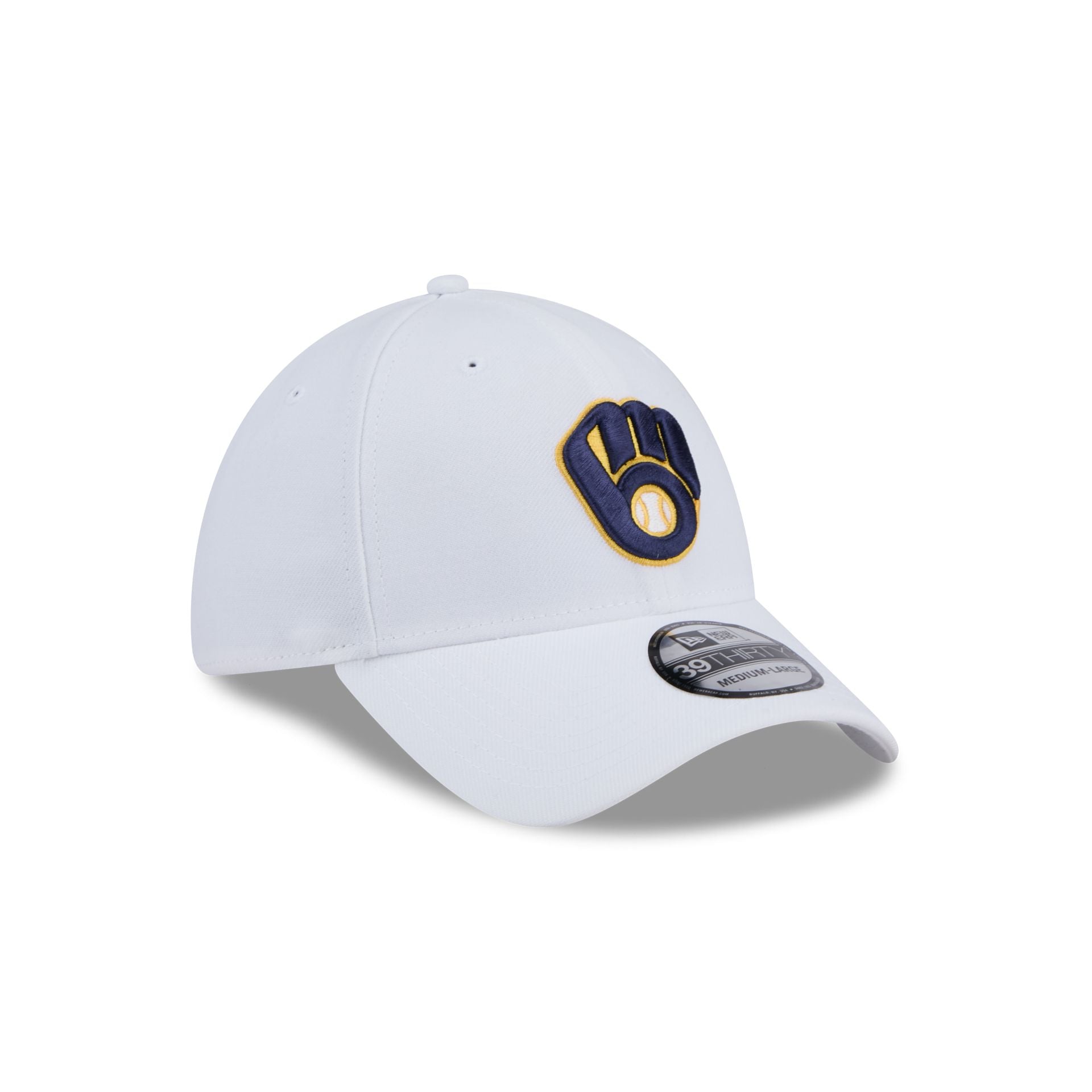 The Milwaukee Brewers Optic White 39THIRTY Stretch Fit Hat features an embroidered Brewers logo at the front panels with a matching team wordmark at the rear and a white undervisor.