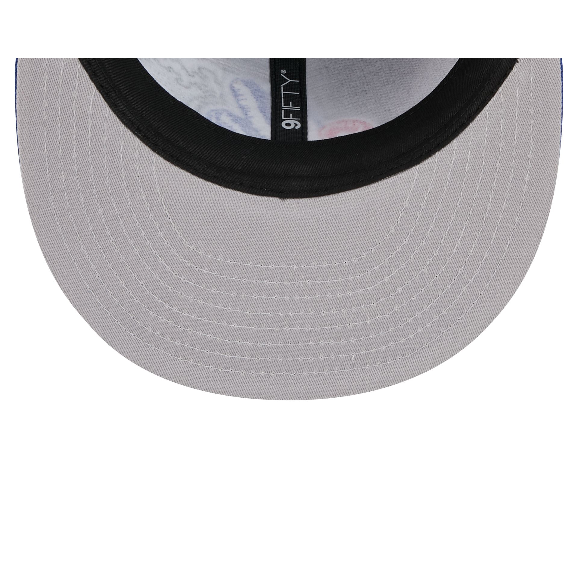 The Montreal Expos Tidal Flow Retro Crown 9FIFTY Adjustable Cap features an embroidered Expos Cooperstown logo at the front panels with tidal waves throughout the cap. Additional details include an adjustable snapback closure at the rear and a gray undervisor.