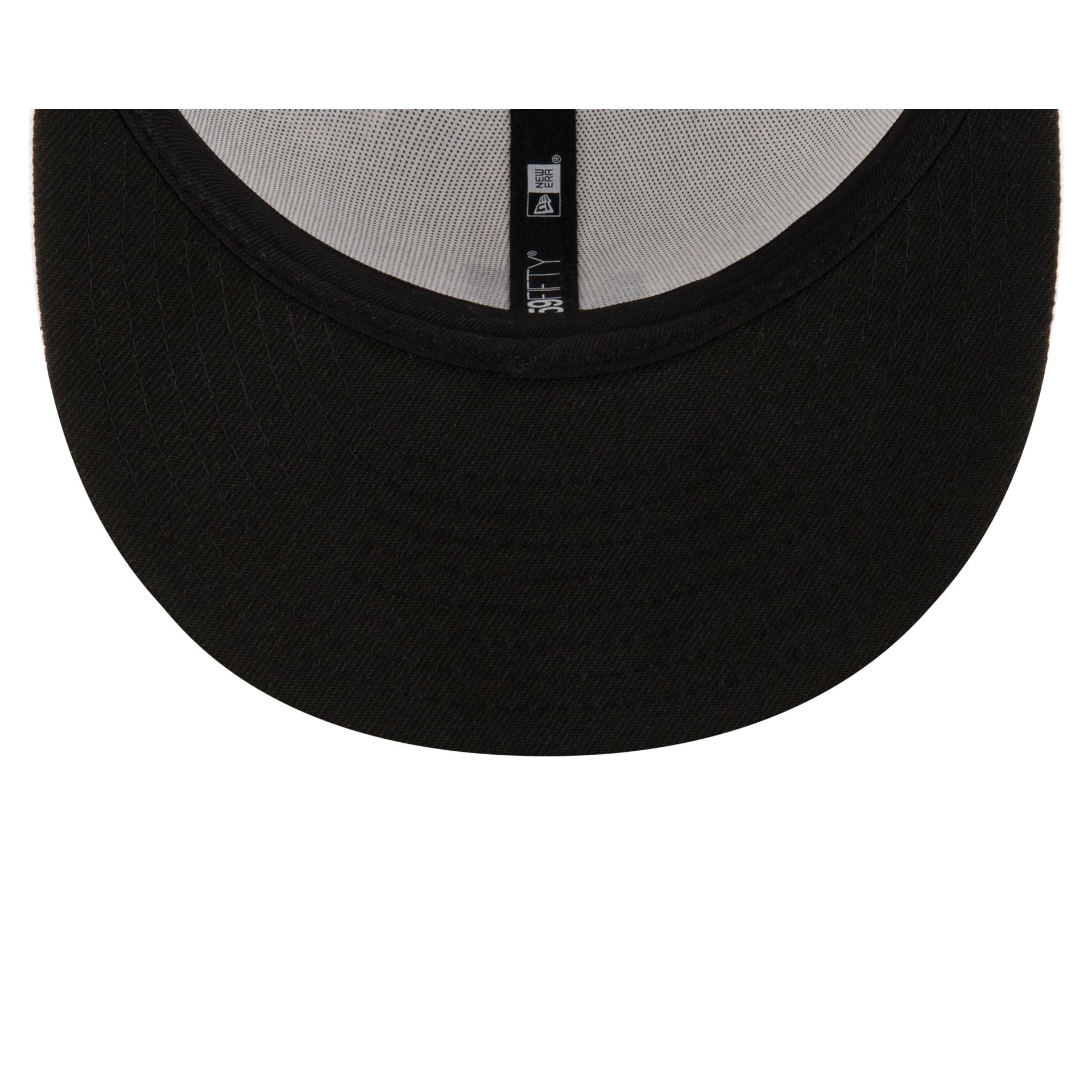 The New Era Golf Optic White 59FIFTY Fitted Cap features an embroidered NEG logo at the front panels with a matching wordmark at the rear and a black undervisor.