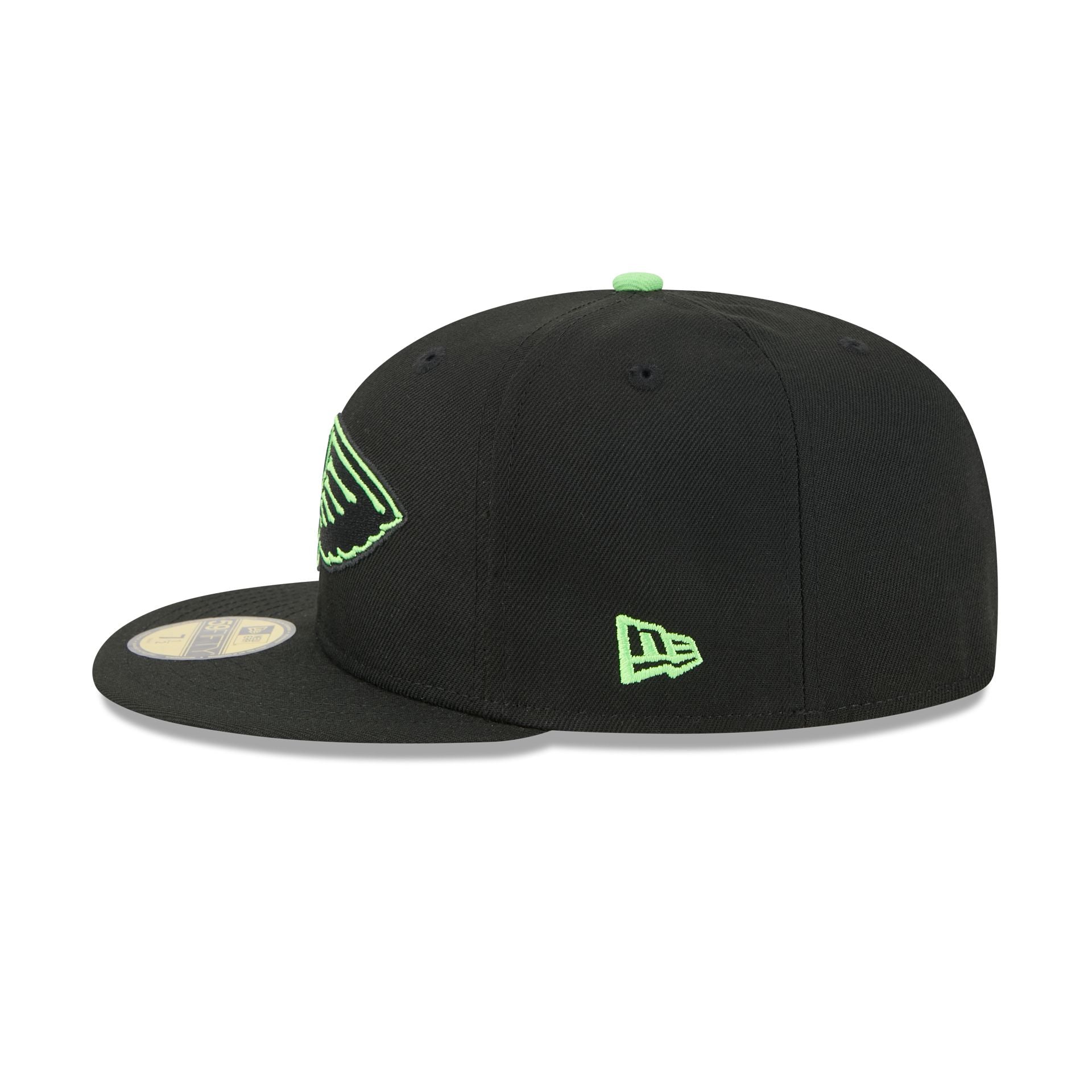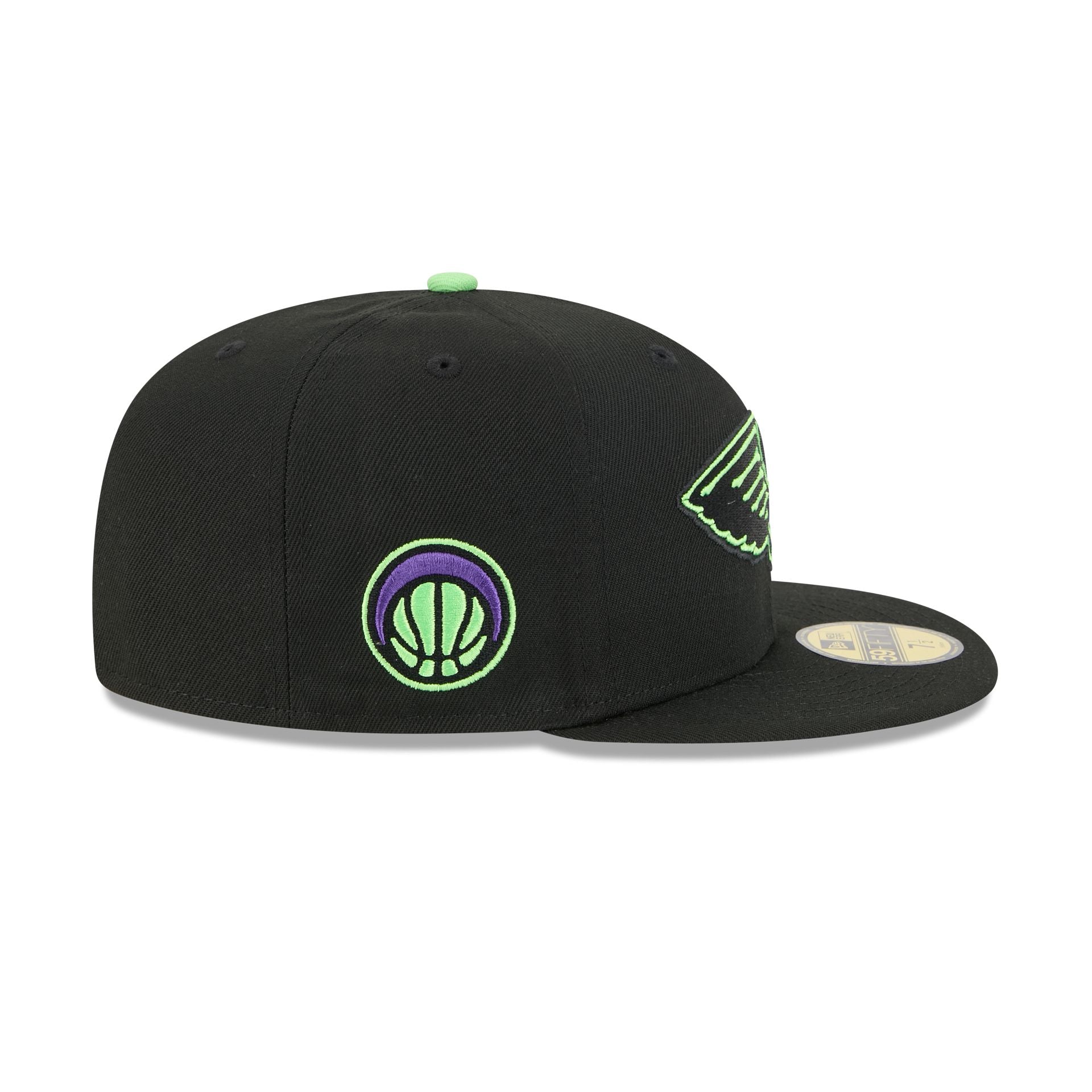 The New Orleans Pelicans 2025 City Edition 59FIFTY Fitted Cap features an embroidered Pelicans City Edition logo at the front panels with a logo at the right-wear side. Additional details include the NBA Logoman at the rear and a gray undervisor.