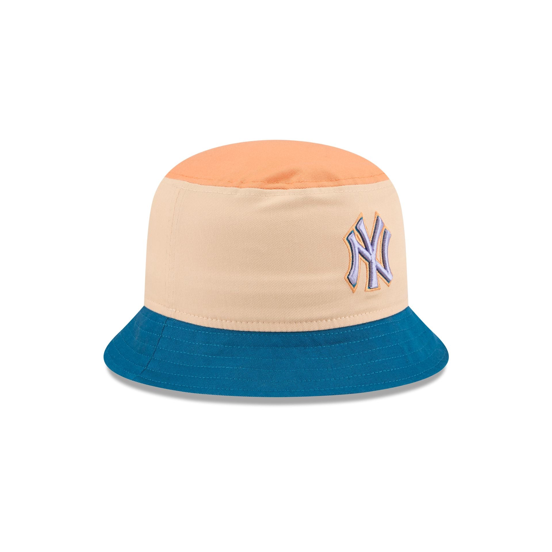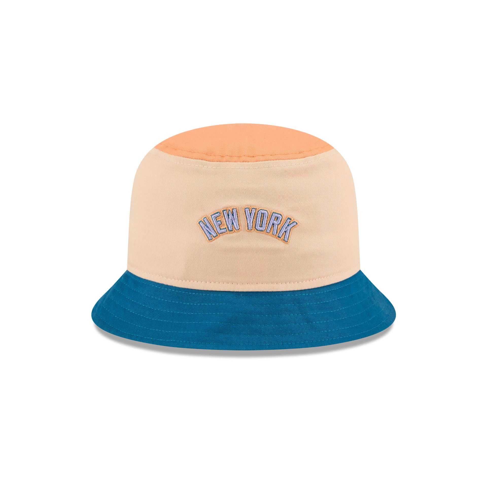 The New York Yankees Mango Mocha Bucket Hat features an embroidered Yankees logo at the front panels with a wordmark at the rear.