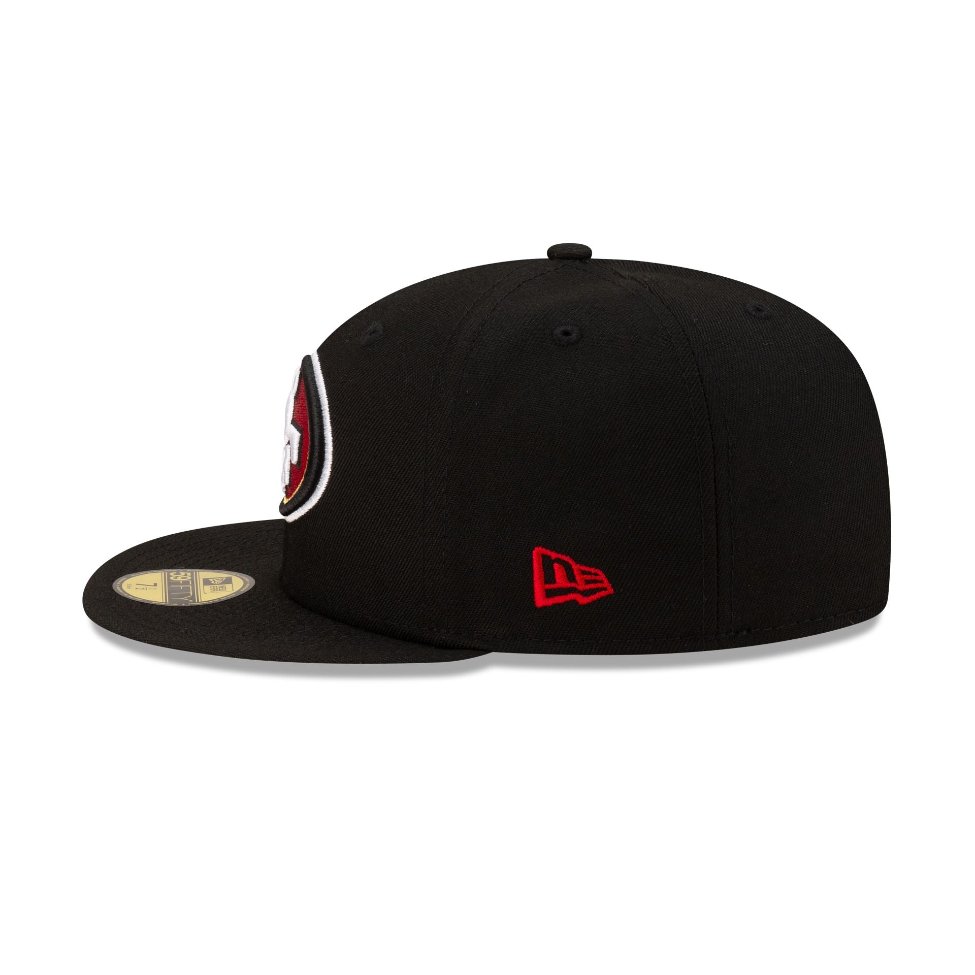 The San Francisco 49ers Basic Black 59FIFTY Fitted Cap features an embroidered 49ers logo at the front panels with an alternate team logo at the rear.