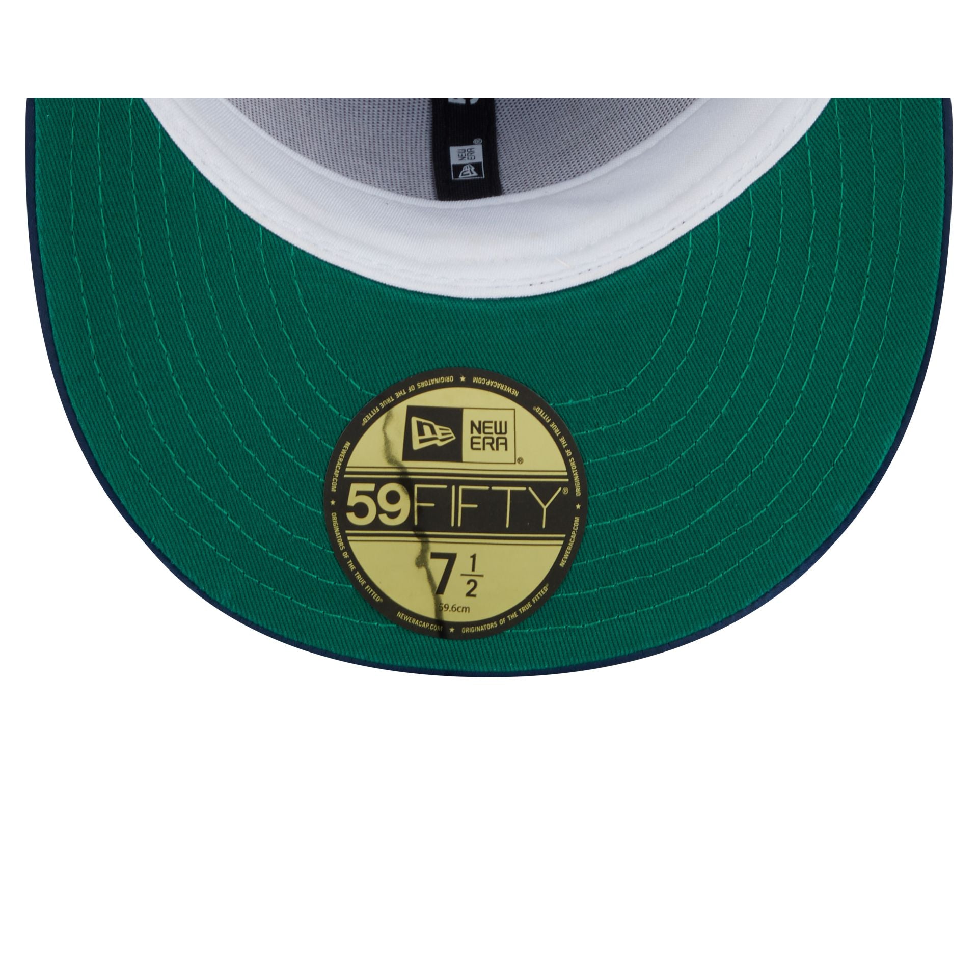 The Tennessee Titans Spring Satin 59FIFTY Fitted Cap features an embroidered Titans wordmark at the front panels with a New Era pin at the top left panel and an NFL Shield logo at the rear. Additional details include a satin fabrication throughout, a logo at the right-wear side, and a green undervisor.