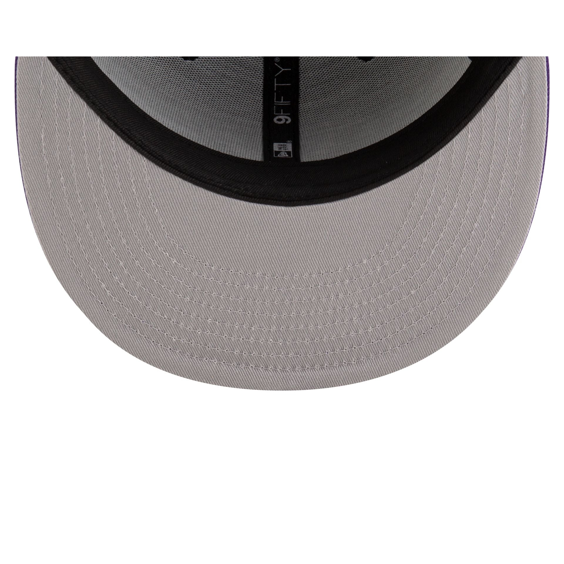 The Toronto Raptors Classic Edition Black 9FIFTY Snapback features an embroidered Raptors logo at the front panels with a team logo at the right-wear side. Additional details include an NBA Logoman above a snapback closure at the rear and a gray undervisor.